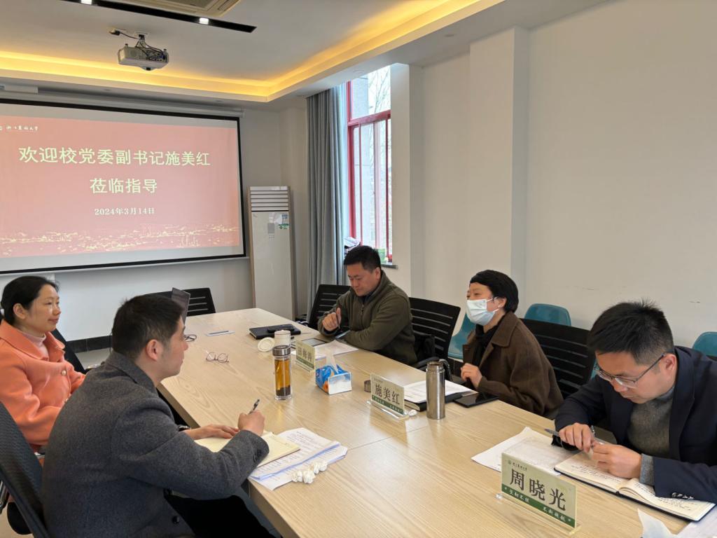 學(xué)工部相關(guān)負(fù)責(zé)人匯報(bào)了我校學(xué)生心理健康的基本情況,表示將為學(xué)生全面成長成才提供更加優(yōu)質(zhì)的心理支持服務(wù),助推學(xué)校沖擊“雙一流”,為建設(shè)區(qū)域特色鮮明的高水平生態(tài)性研究型大學(xué)做好心理安全保障。